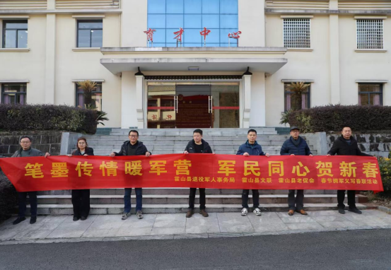 日前,霍山县退役军人事务局、县农业农村局、县文联、县老促会四家单位走进驻霍某部基层连队,开展“笔墨传情暖军营,军民同心贺新春”春节拥军义写春联活动,用一副副火红的春联、一句句真挚的祝福,向节日期间坚守战位的官兵们致以崇高敬意。