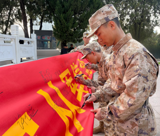 宣誓结束后,新兵们在写有“传承红色基因 坚定从军信念”的横幅上郑重签名,一笔一划间写下的不仅是名字,更是从军报国的赤子之心。随后,大家有序来到六安烈士英名墙前,向革命先烈敬献鲜花、鞠躬致敬,表达对英烈的无限哀思与崇高敬意。