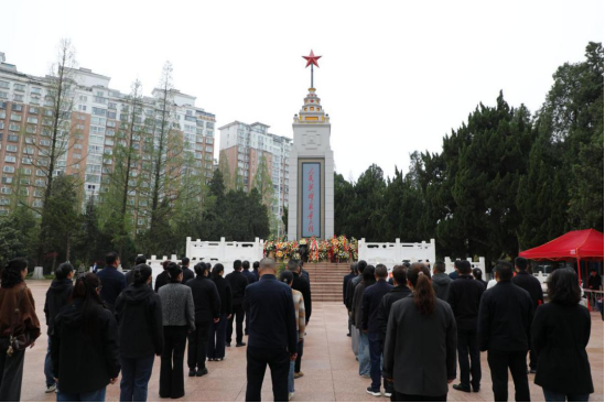 4月3日,金安区在张家店战斗烈士陵园开展“追寻·2026·清明祭英烈”主题活动。区退役军人事务局、区民政局、张店镇人民政府及张店中学师生代表等450余人参加。祭扫仪式在庄严的国歌声中拉开帷幕,全体人员肃立默哀。区领导代表上前仔细整理花篮缎带,表达对英烈的深切追思。随后,全体人员有序瞻仰烈士纪念碑、参观纪念设施,逐一擦拭墓碑、敬献鲜花,用庄重的仪式传承英烈精神、汲取奋进力量。