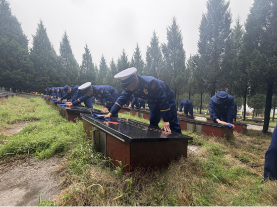 清明前夕,舒城县消防救援大队组织全体消防救援人员前往县烈士陵园开展清明祭扫活动。全体人员身着制服、整齐列队、肃立默哀,深切缅怀英烈们的牺牲奉献精神。随后,大家分工协作,细致擦拭烈士墓碑、清理陵园内落叶,以朴素行动表达对革命先烈的深切缅怀与崇高敬意。